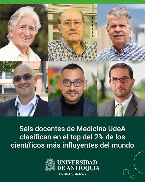 “Facultad de Medicina de la Universidad de Antioquia: seis de nuestros docentes figuran en el listado World’s Top 2% Scientists Network que reconoce una vez por año al 2% de los científicos más influyentes del mundo”