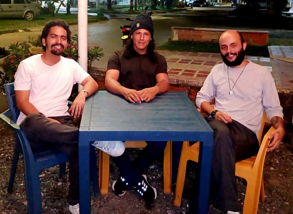 Foto principal: El poeta y psicoanalista Lucas Dávila, el poeta José Morelos, y Santiago Moná. Padres del Andaísmo en Apartadó.