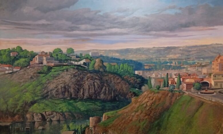 (Foto principal/Paisaje de Toledo, obra en la que trabaja actualmente el artista)