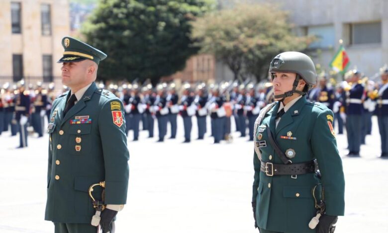 Foto de portada/ A la izquierda el nuevo comandante de la Brigada XVII, coronel Diego Alberto León Grimaldos, durante una para militar en Bogotá.