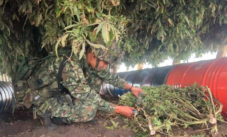 Dijo además que, en una segunda operación, en la vereda Potrerito, municipio de Toribío “lograron la ubicación y destrucción de dos sistemas artesanales de secado y producción de marihuana tipo exportación. Ahí se incautaron 753 kilogramos de marihuana listos para su empaque y comercialización”.