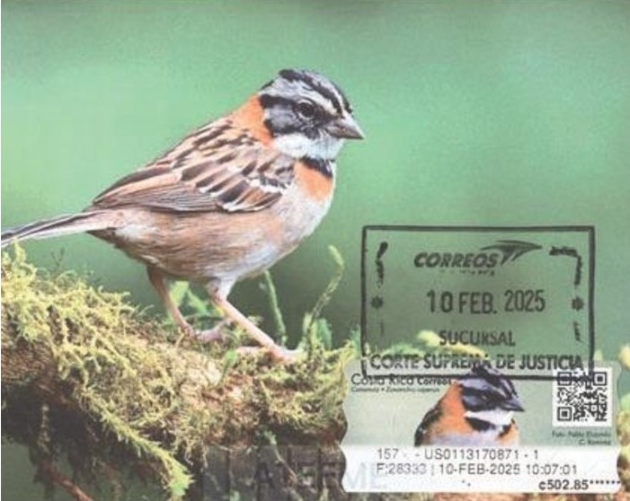 Ese no es el caso para los amantes de las aves, porque el Correo de Costa Rica viene emitiendo este tipo de tarjetas desde inicios de este siglo y en marzo de 2024 nos regala esta bella especie de gorrión conocida como el Come Maíz, muy difundida en ese país y en Centroamérica en sentido general.