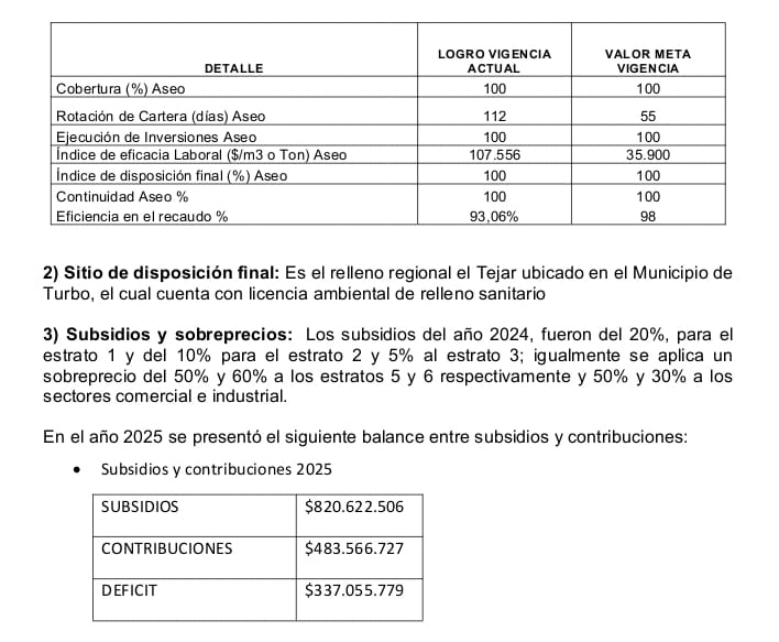 La Empresa de Aseo de Carepa S.A.S. E.S.P., publica los indicadores de Gestión y Resultados correspondientes a diciembre 31 del 2025: