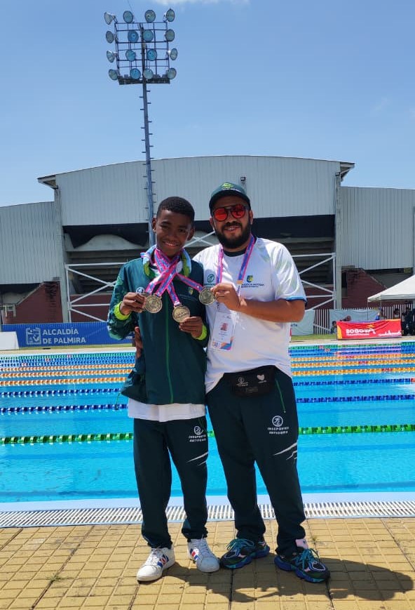 Juan José participa en la categoría S-9 para natación y en la final de los Intercolegiados se lució en Palmira de donde llegó con cinco oros. Todavía está esperando la llamada de felicitación del Imder de Apartadó.