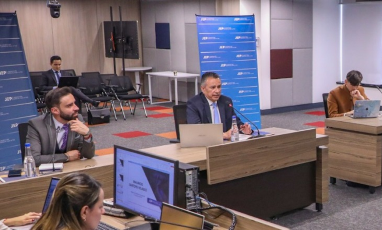 (Foto principal/Al centro, el general Santoyo compareciendo ante la JEP)-Foto Institucional