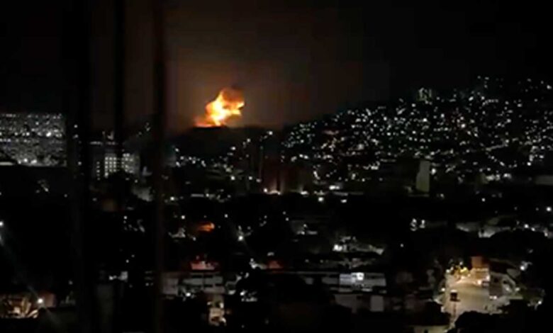 Foto principal/Imagen de bombardeos esta madrugada en Venezuela, tomadas del vídeo que el presidente Gustavo Petro reposteó en su cuenta de X.