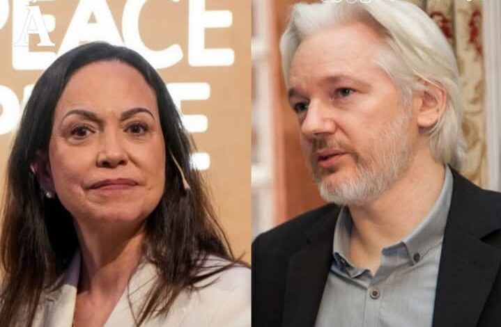 Foto principal/Julian Assange y la premio nobel de paz, María Corina Machado