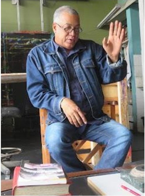 De inmediato nos trenzamos en un ameno y desordenado diálogo que incluyó arte, literatura, política, el actual conflicto social que vive el país, viejos recuerdos de su infancia en la zona bananera y desde luego su vida de artista plástico y de docente, además de varios cafés que él mismo preparó.