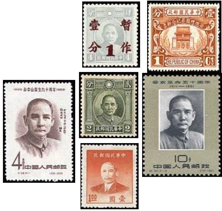 Así, la República China de 1912 hizo 23 emisiones ordinarias con 183 sellos que fundamentalmente reflejan el retrato del Dr. Sun Yat-Sen, aunque también su Mausoleo.
